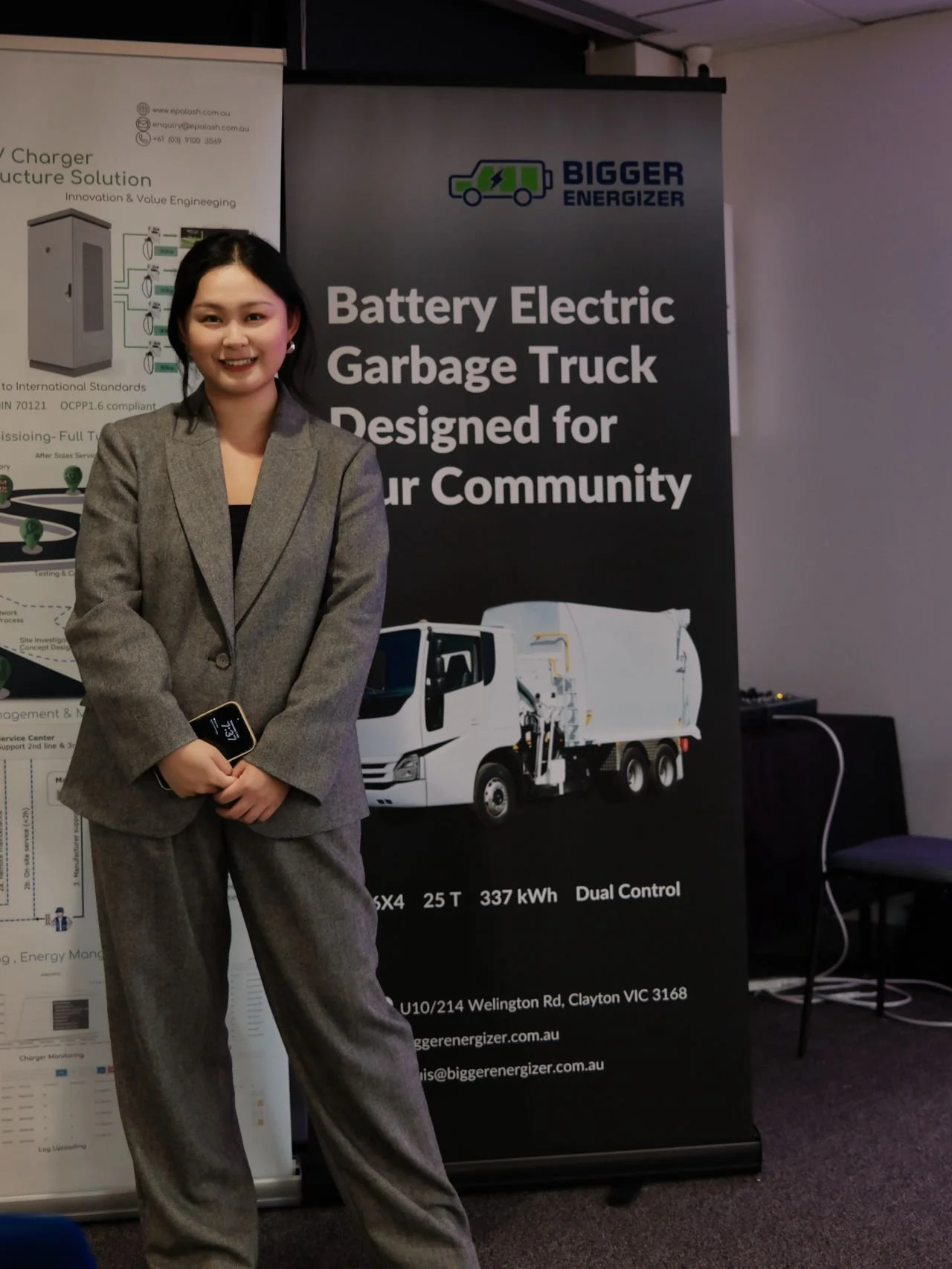 On July 3, Bigger Energizer joined the Melbourne EV Meetup for an evening of connection, inspiration, and conversation. Our co-founder Zoe had the pleasure of sharing insights into our work developing electric garbage trucks purpose-built for Australian conditions—designed to meet the real operational needs of local councils and waste operators.